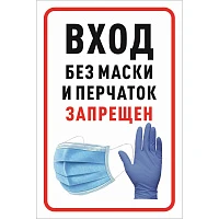 Знак безопасности Вход без маски и перчаток запрещен 200х300 мм, пленка