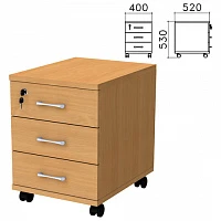 Тумба подкатная "Эко/Этюд", 404х454х573 мм, 3 ящика, замок, бук бавария, 402844-550