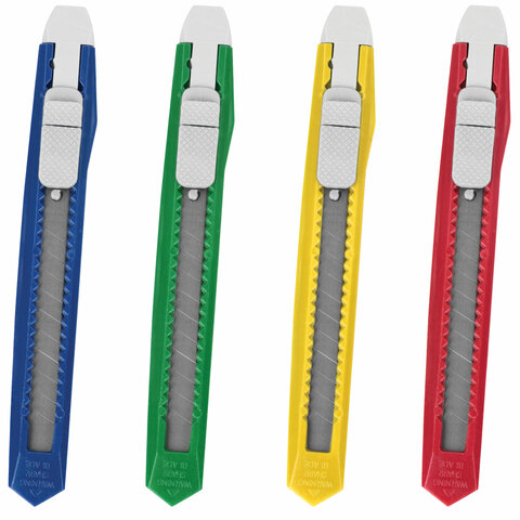 Нож канцелярский 9 мм STAFF "Economy", фиксатор, клип, корпус ассорти, 237080