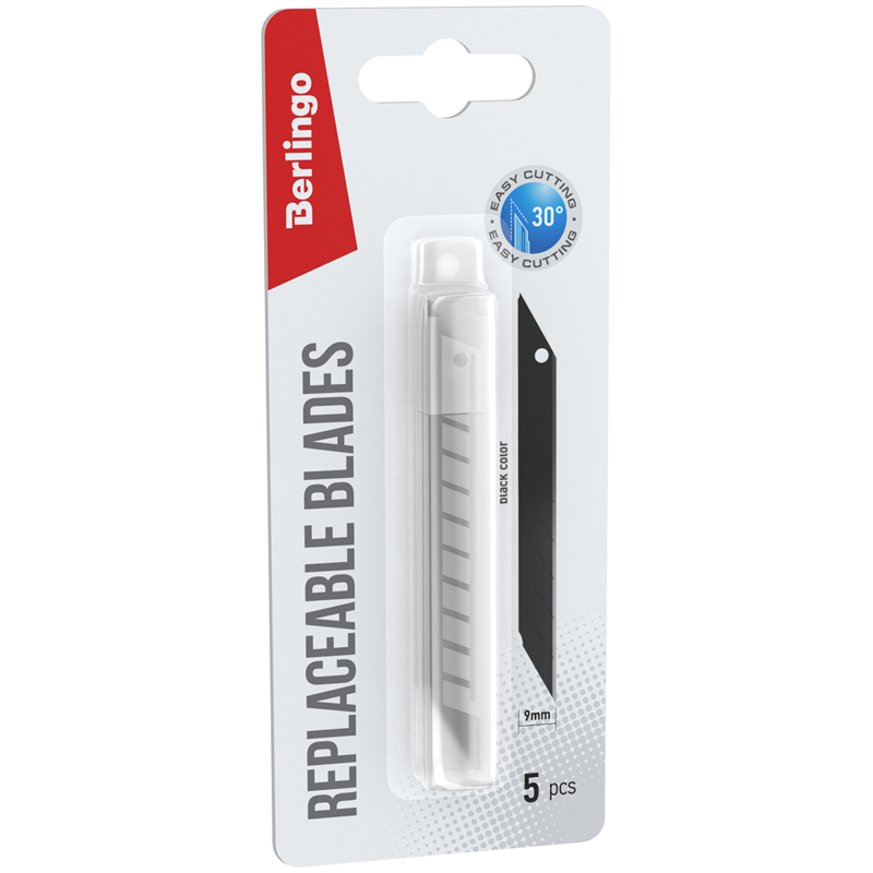 Лезвия для канцелярских ножей Berlingo, 9мм, 5шт., черный цвет, блистер, европодвес