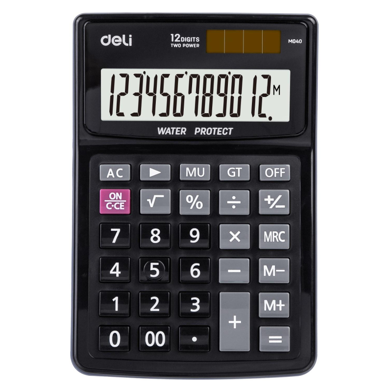 Калькулятор настольный компактный Deli 12раз, влагоз-й, дв.пит.,черн. EM04031