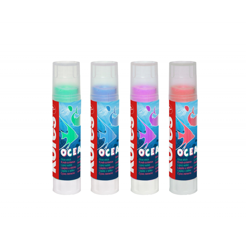 Клей-карандаш 10г Kores Ocean ассорти: прозрачный син, голуб, фиол, розов