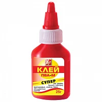 Клей ПВА-М ЛУЧ "Супер" (бумага, картон, кожа, ткань, дерево, стекло, фотографии), 25 г, 18С 1187-08