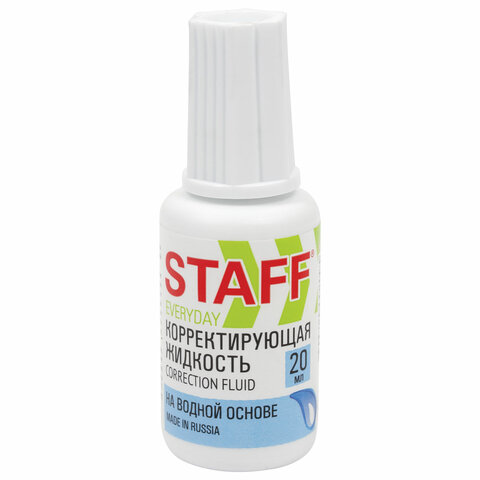 Корректирующая жидкость STAFF на водной основе, 20 мл, с кисточкой, 220835