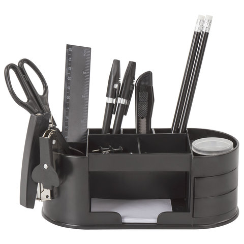 Настольный набор позволит эффективно организовать рабочее место. Количество предметов в наборе: 15 шт.. Количество отделений: 11. Основной цвет: черный. Дополнительный цвет: нет. Материал подставки: пластик. Высота: 206 мм. Ширина: 120 мм. Глубина: 88 мм. Упаковка: картонная коробка Бренд - STAFF. Производитель - Китай. Артикул - 231080. Штрихкод - 4606224013947