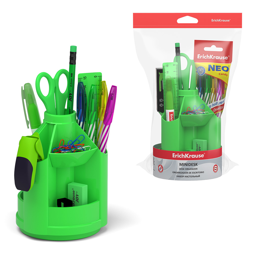 Набор настольный на вращающейся подставке Erich Krause Mini Desk, Neon Solid, зеленый