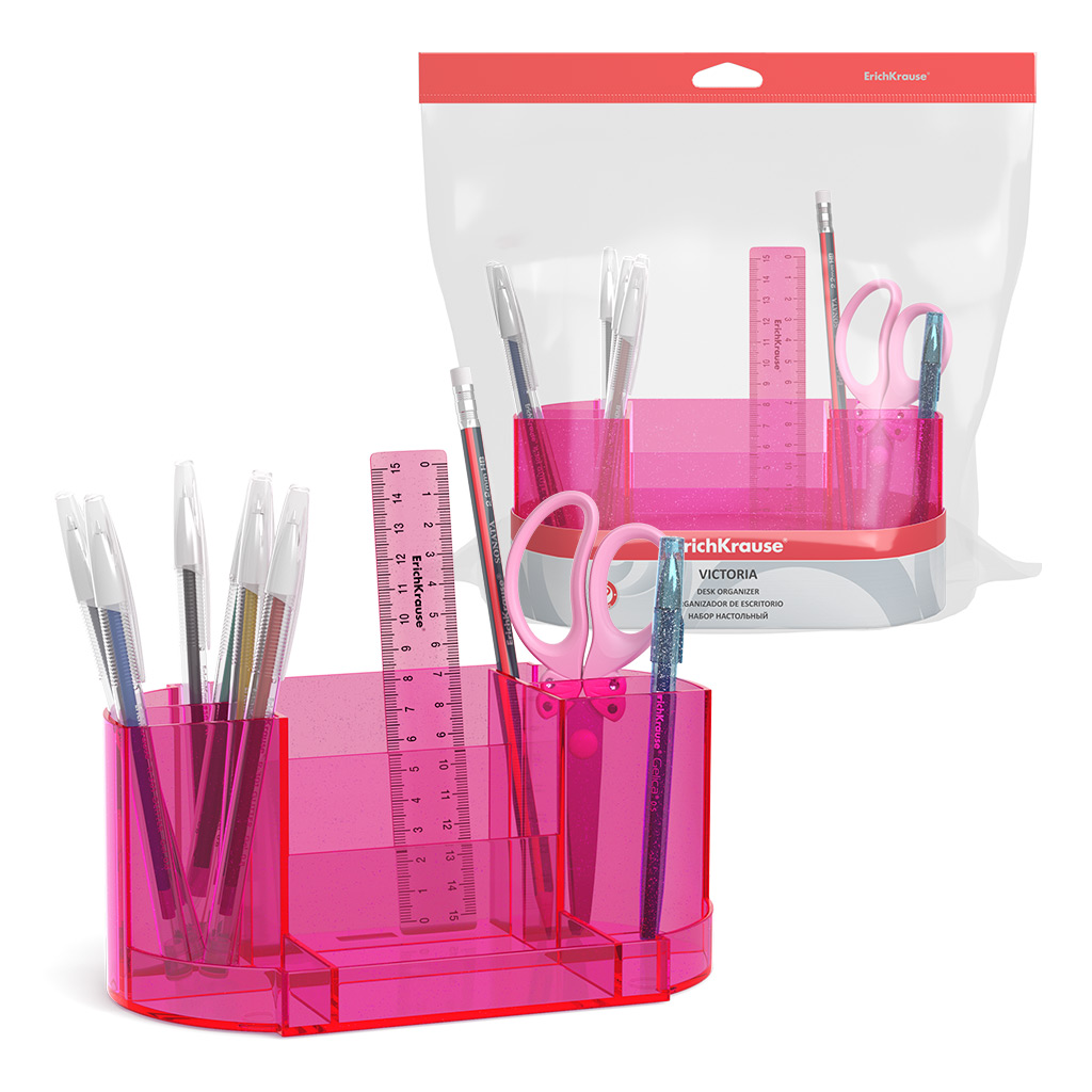 Набор настольный пластиковый Erich Krause® Victoria, Glitter, розовый