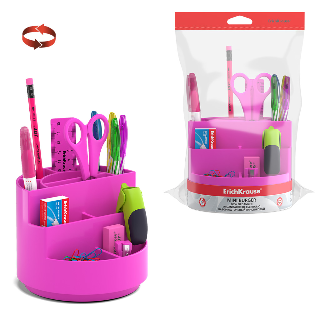 Набор настольный вращающийся пластиковый ErichKrause® Mini Burger, Neon Solid, розовый