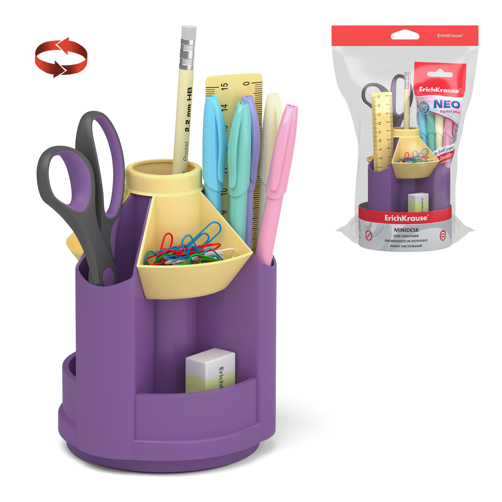 Набор настольный вращающийся пластиковый Erich Krause® Mini Desk, Iris, фиолетовый с желтой вставкой