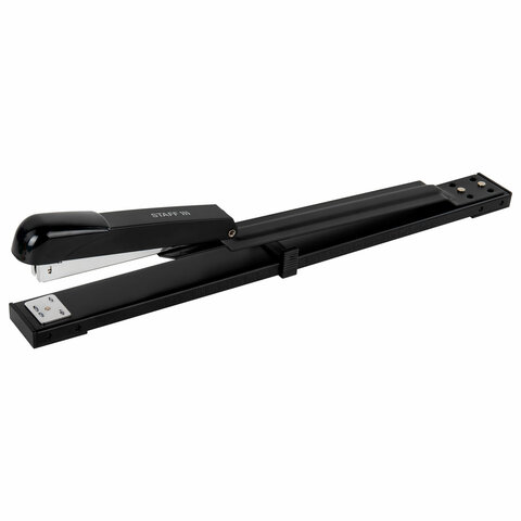 Брошюровочный степлер № 24/6, 26/6 STAFF "Manager" предназначен для скрепления крупноформатных документов. Металлический механизм позволяет сшивать открытым и закрытым способами документы объемом до 25 листов и регулировать глубину закладки бумаги до 30 см. Вмещает 100 скоб № 24/6. Корпус выполнен из металла и пластика.
