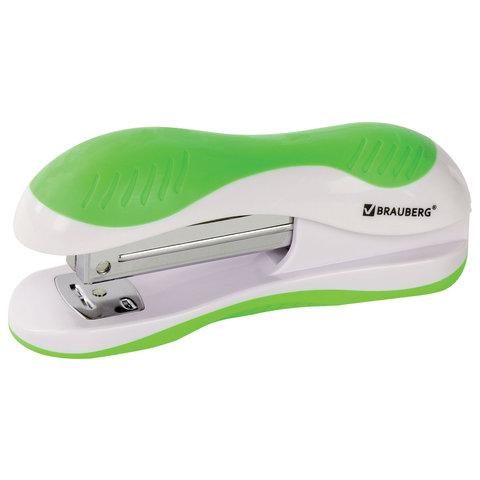 Степлер №24/6, 26/6 BRAUBERG "JET", до 20 листов, эргономичный, бело-зеленый, 227759