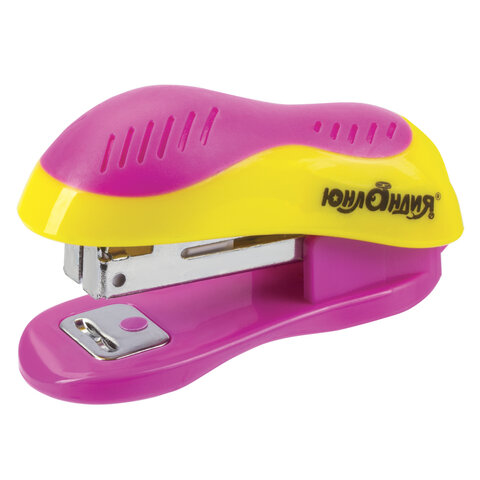Степлер №10 МИНИ ЮНЛАНДИЯ, до 15 листов, с антистеплером, эргономичный, желто-розовый, 228491
