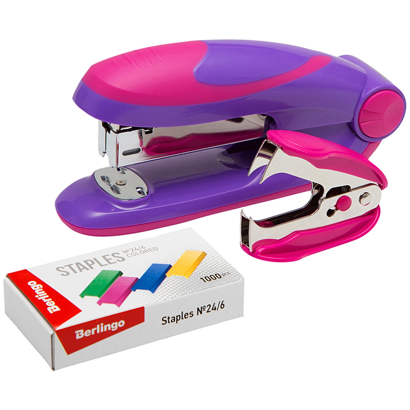 Набор Berlingo "Fuze": степлер №24/6,26/6 до 25л., фиолетовый, антистеплер, скобы №24/6, блистер