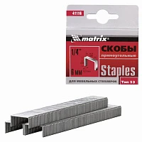 Скобы для степлера мебельного, тип 53, 6 мм, MATRIX, количество 1000 шт., 41116