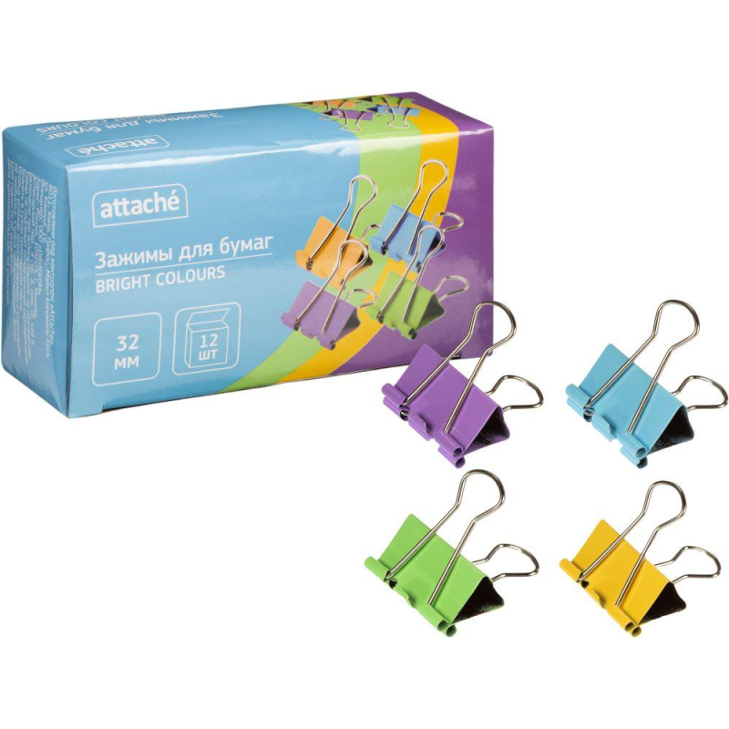 Зажимы для бумаг Attache Bright Colours 32мм,цветн, 12шт/уп в карт.коробке
