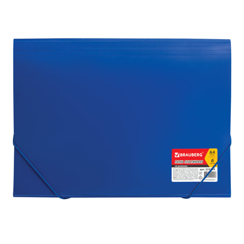 Папка на резинках BRAUBERG "Business", А4, 6 отделений, пластиковый индекс, синяя, 0,5 мм, 224144