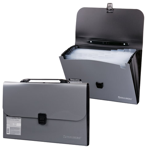 Портфель пластиковый BRAUBERG, А4, 327х254х30 мм, диагональная фактура, 13 отделений, пластиковый индекс, серебристый, 221442