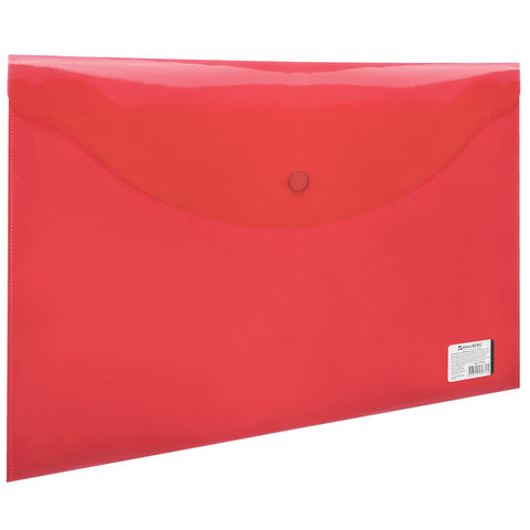 Папка-конверт с кнопкой BRAUBERG, А4, до 100 листов, прозрачная, красная, 0,15 мм, 221636