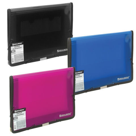 Папка на резинках BRAUBERG, широкая, А4, 330х240 мм, ассорти, до 500 листов, 0,6 мм, 221368