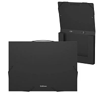 Папка на резинке с ручкой А4, 600 мкм, ErichKrause Matt Classic, корешок 30 мм, тиснение "песок", чёрная