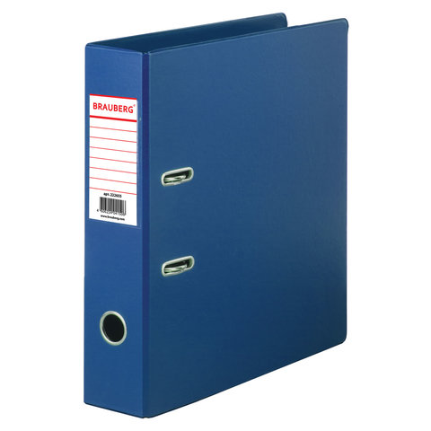 Папка-регистратор BRAUBERG с двухсторонним покрытием из ПВХ, 70 мм, синяя, 222655