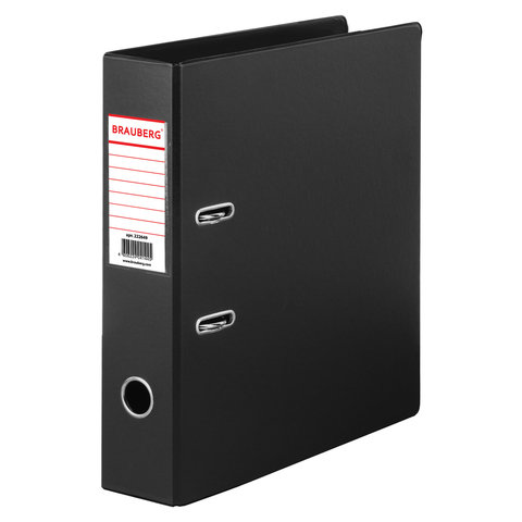 Папка-регистратор BRAUBERG с двухсторонним покрытием из ПВХ, 70 мм, черная, 222649