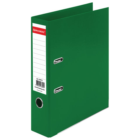 Папка-регистратор BRAUBERG "EXTRA", 75 мм, зеленая, двустороннее покрытие пластик, металлический уголок, 228573