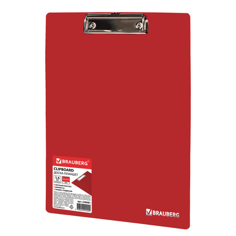 Доска-планшет BRAUBERG "Contract" сверхпрочная с прижимом А4 (313х225 мм), пластик, 1,5 мм, КРАСНАЯ, 228681
