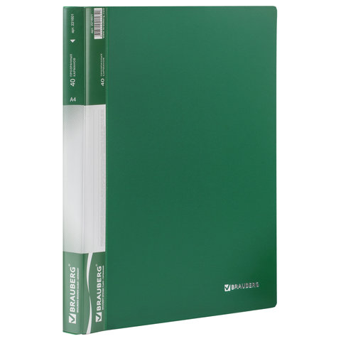Папка 40 вкладышей BRAUBERG стандарт, зеленая, 0,7 мм, 221601