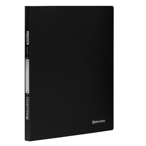 Папка с боковым металлическим прижимом BRAUBERG стандарт, черная, до 100 листов, 0,6 мм, 221630