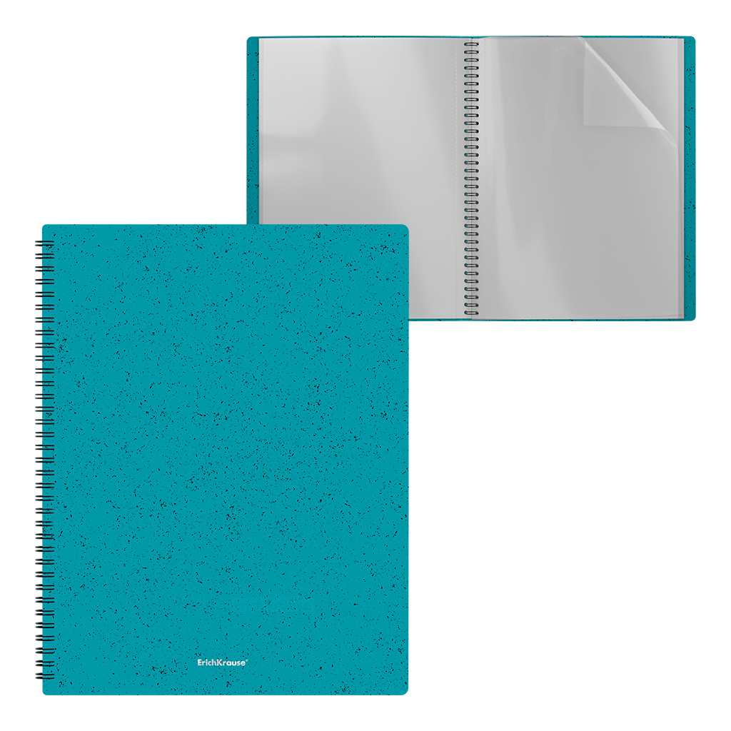 Папка файловая пластиковая на спирали Erich Krause® Matt Grains, с 40 прозрачными карманами, A4, бирюзовый (в пакете по 4 шт.)