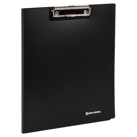 Папка-планшет BRAUBERG "Стандарт", с верхним прижимом и крышкой, А4, пластиковая, черная, до 50 листов, 0,9 мм, 221646
