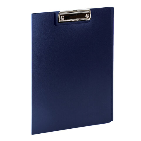Папка-планшет STAFF, А4 (310х230 мм), с прижимом и крышкой, пластик, синяя, 0,5 мм, 229220