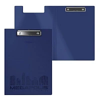 Папка-планшет пластиковая Erich Krause MEGAPOLIS, A4, синий (в пакете по 4 шт.)