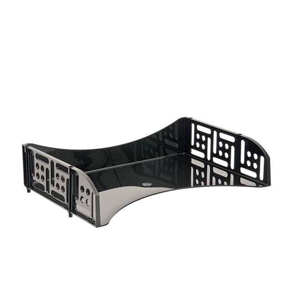 Горизонтальный лоток с широкой загрузкой. Выполнен из полистирола, имеет гладкую глянцевую поверхность. Лотки можно устанавливать друг на друга, специальные фиксаторы препятствуют соскальзыванию с нижнего лотка.