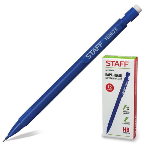 Карандаш механический STAFF, корпус синий, ластик, 0,5 мм, 180875