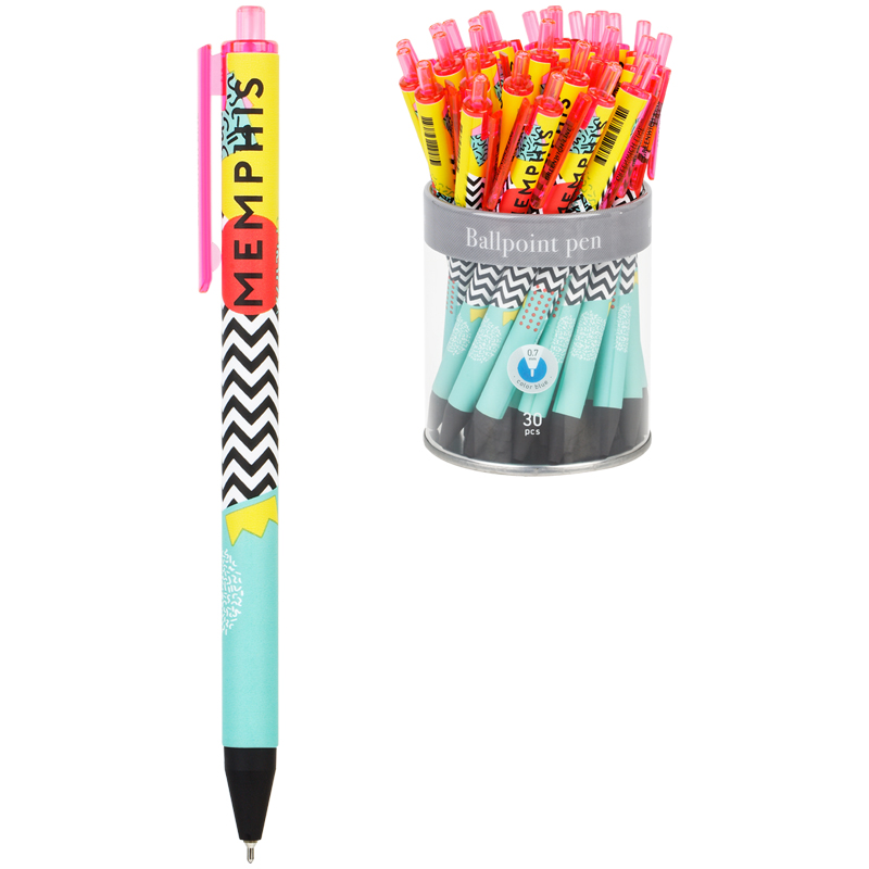 Ручка шариковая автоматическая Greenwich Line "Memphis" синяя, 0,7 мм, игольчатый стержень, софт-тач