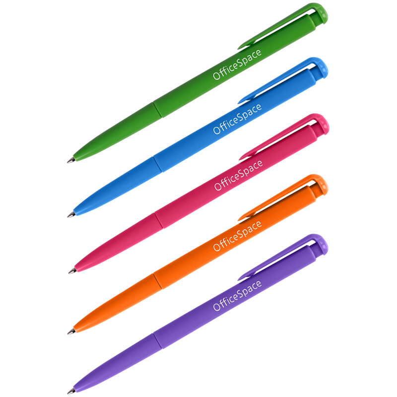 Автоматическая шариковая ручка OfficeSpace – отличный инструмент для ежедневного использования. Внутри цветного пластикового корпуса – синие чернила. На ручке есть клип – можно закрепить её на одежде или тетради. Варианты цветов корпуса: голубой, оранжевый, розовый, зелёный, фиолетовый. Благодаря диаметру пишущего узла 0,7 мм подходит для любого стиля письма. • Цвет чернил: синий, • Механизм: кнопочный, • Толщина линии письма: 0,5 мм, • Длина письма: 800 метров, • Цвет корпуса: ассорти.
