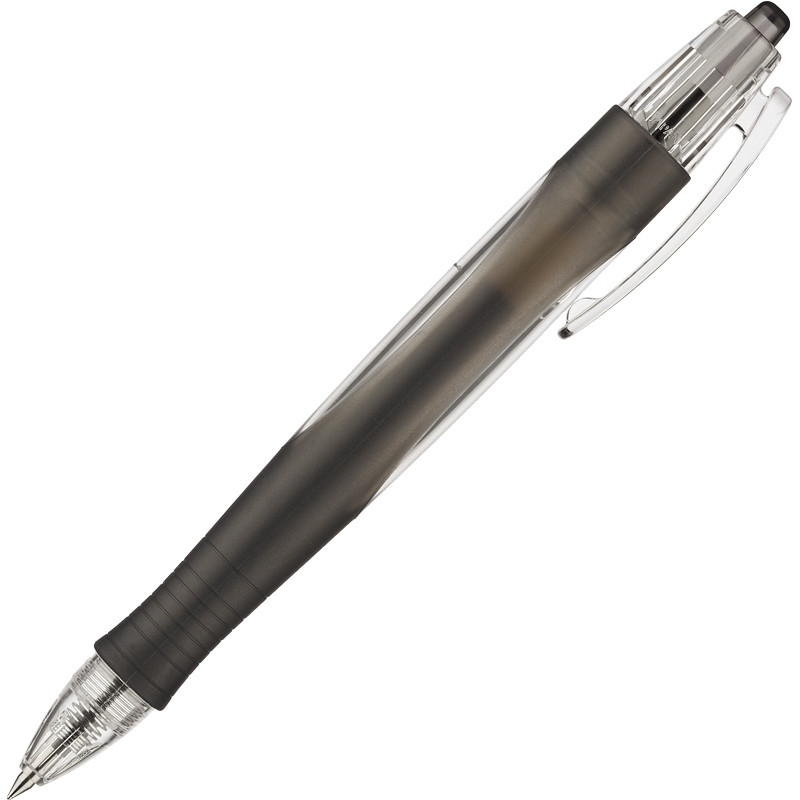Многоразовая автоматическая гелевая ручка Pilot имеет удобный для пальцев прорезиненный пластиковый корпус. Прозрачное окошко позволяет контролировать уровень чернил. Толщина линии письма - 0,3 мм. В комплекте стержень с чернилами черного цвета, которые быстро высыхают, не размазываются. Ручка обеспечивает легкое и мягкое письмо, яркие и насыщенные линии. На корпус можно нанести тампопечать.