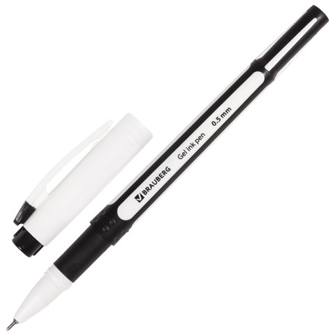 Ручка гелевая с грипом BRAUBERG "Contact", ЧЕРНАЯ, корпус черный, игольчатый узел 0,5 мм, линия письма 0,35 мм, GP145