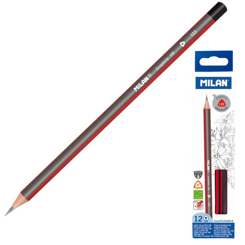 Карандаш чернографитный MILAN HB, б/ласт., полос.корпус, 71230312