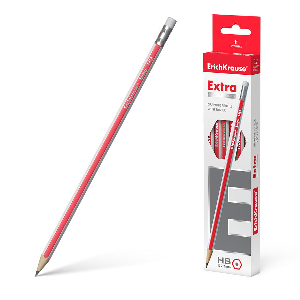 Чернографитный шестигранный карандаш с ластиком Erich Krause Extra HB (в коробке по 12 шт.)