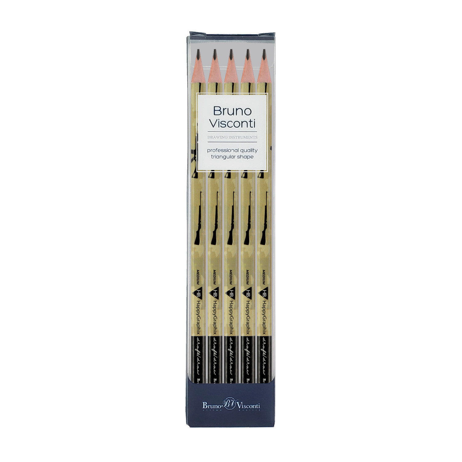 НАБОР ИЗ 5-И КАРАНДАШЕЙ ЧЕРНОГРАФИТОВЫХ "HappyGraphix. МИЛИТАРИ. ОРУЖИЕ" НВ