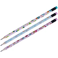 Карандаш чернографитный BRAUBERG "PATTERNS", 1 шт., HB, с ластиком, корпус ассорти, 181748