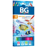 Карандаши цветные BG "Maritime", 12цв., шестигранные, пластиковые, 2,8мм, европодвес