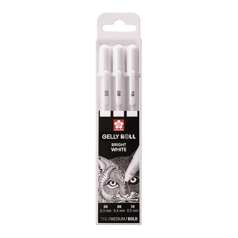 Набор гелевых ручек SAKURA "Gelly Roll" предназначен для рисования и различных видов хобби и декора (скрапбукинг, создание открыток или приглашений). Набор состоит из 3-х белых гелевых ручек: Gelly Roll 05 (пишущий узел 0.3 мм), Gelly Roll 08 (пишущий узел 0.4 мм), Gelly Roll 10 (пишущий узел 0.5 мм).
