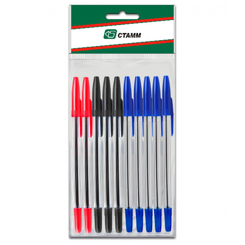 Набор шариковых ручек Стамм "511", 10шт., 3цв., 1,0мм, европодвес