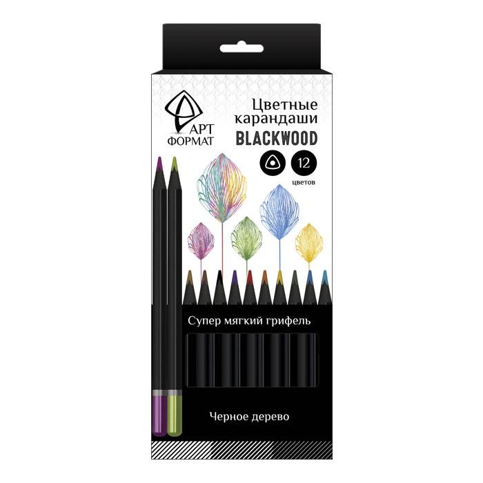 Набор цветных карандашей АРТформат Blackwood 12 цв. супер мягкий грифель трехгранные черное дерево. AF03-051-12