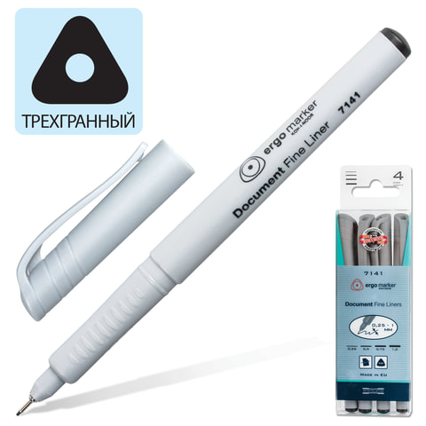 Ручки капиллярные KOH-I-NOOR, НАБОР 4 шт., ЧЕРНЫЕ, трехгранные, линия письма 0,25/0,5/0,75/1 мм, 777141JD01PK