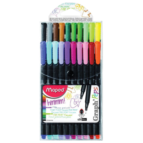 Набор капиллярных ручек (линеров) MAPED (Франция) 20 шт., АССОРТИ, "Graph Pep's", линия письма 0,4 мм, 749151